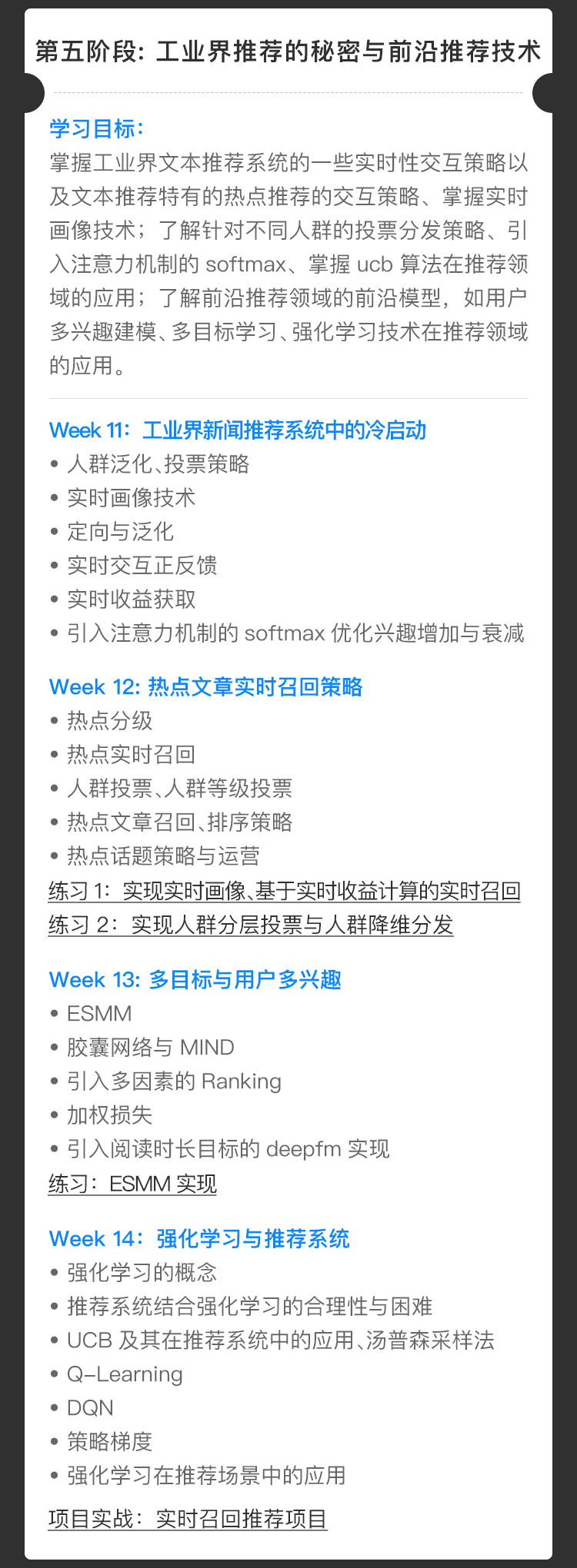 本课程《 推荐系统算法工程师培养计划 》来自贪心学院,原价21999,本课程有真实的项目实战,在项目中可以真实的学习到推荐系统算法,15周高清课程带你一起一步步的学习系统算法。