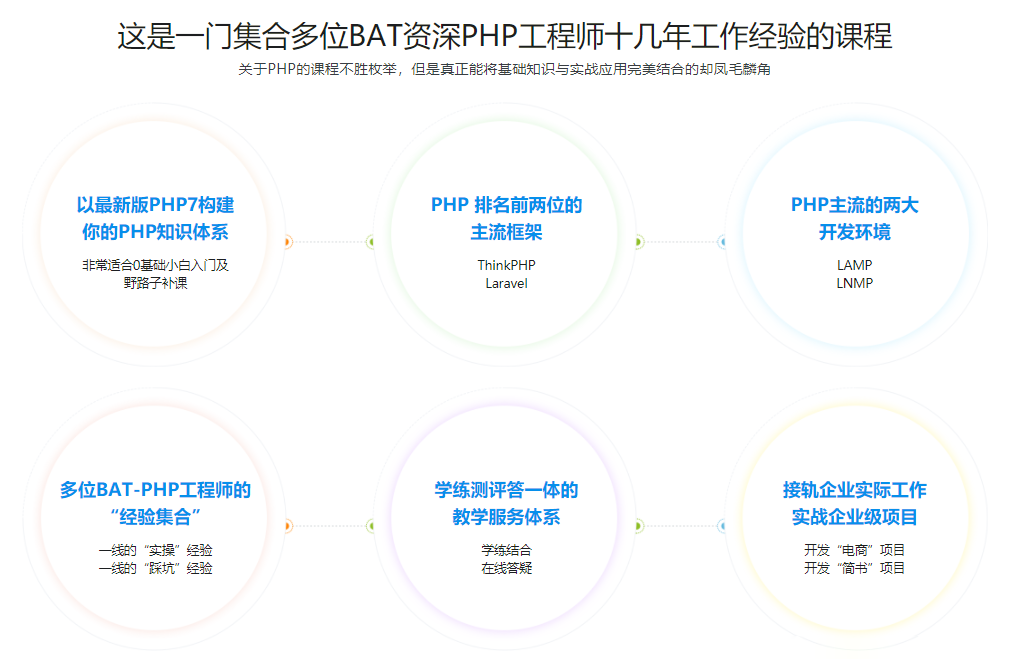 - 这是一门集合多位BAT资深PHP工程师十几年工作经验的课程。以最新版PHP7构建你的PHP知识体系