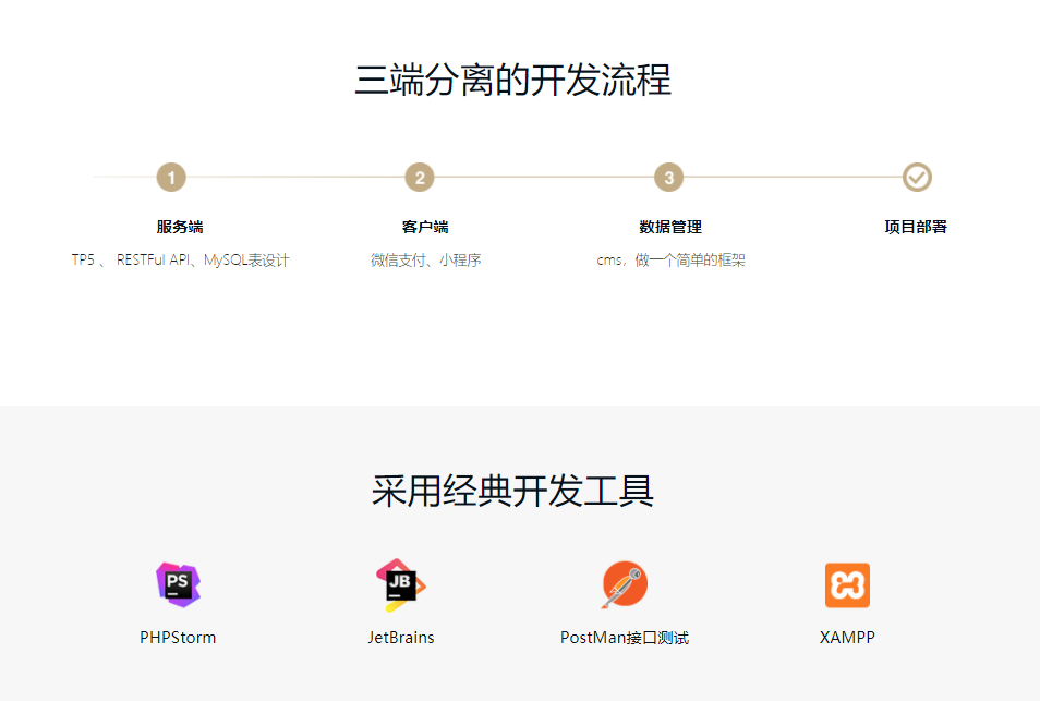 通过开发一个已上线的小程序商城全栈应用,学会如何打造iOS,Android,Web多端适配的服务端标准API,掌握三端分离开发方式,理解现代Web的基本架构思想