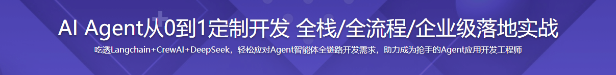 AI Agent 开发已是AI时代的关键技能,市场需求旺盛,人才紧缺。越早掌握,未来收益越大!本课从基础出发,手把手带你逐步深入,覆盖从需求分析到设计、开发、部署优化及评估的全流程。你将掌握全栈技能(LangChain、CrewAI、Deepseek、RAG、单/多Agent及工作流等)。积累10+多场景实战经验;具备智能化解决方案设计能力;全方位提升企业定制化、智能化开发综合实战能力,助力成为AI时代市场紧缺、枪手人才。