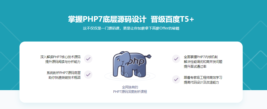 本课程将带你深入剖析PHP7源码,掌握PHP7源码背后的原理,内核机制、核心技术点、PHP扩展及架构设计思想等,提高你的源码阅读和分析能力,提升你的编程技能和代码设计能力,让你快速突破技术瓶颈,解决性能调优和高并发问题。