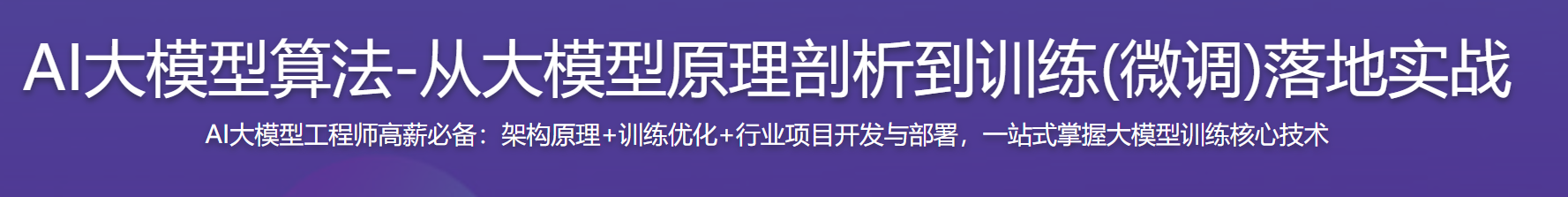 AI大模型职业发展必备课程,助你快速掌握稀缺算法落地技能,冲击高薪AI岗位。课程深入拆解大模型原理、算法与训练调优,覆盖DeepSeek生态、Transformer、MoE、GRPO、预训练及微调(Fine-tuning)等核心技术。通过20+实战案例和政务系统、公文生成两大企业级项目,全流程涵盖开发、微调、部署及融合RAG和Agent技术。帮你全面提升大模型算法开发和应用能力,增强职场竞争力,抢占AI时代技术制高点。