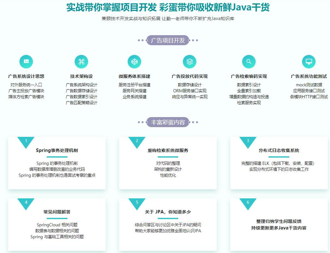 本章的核心目标是实现投放系统,投放系统即实现对广告数据的存储。课程中会对表结构设计进行介绍,使用 JPA 实现对各个数据表的增删改查。同时,由于会涉及Spring相关的知识点(Spring IOC、Spring MVC、SpringBoot),也会对这些做基础介绍。…