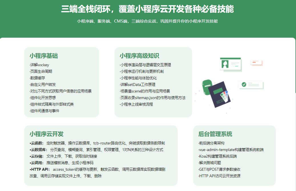课程为小程序进阶课程,全面集成了小程各类知识点
