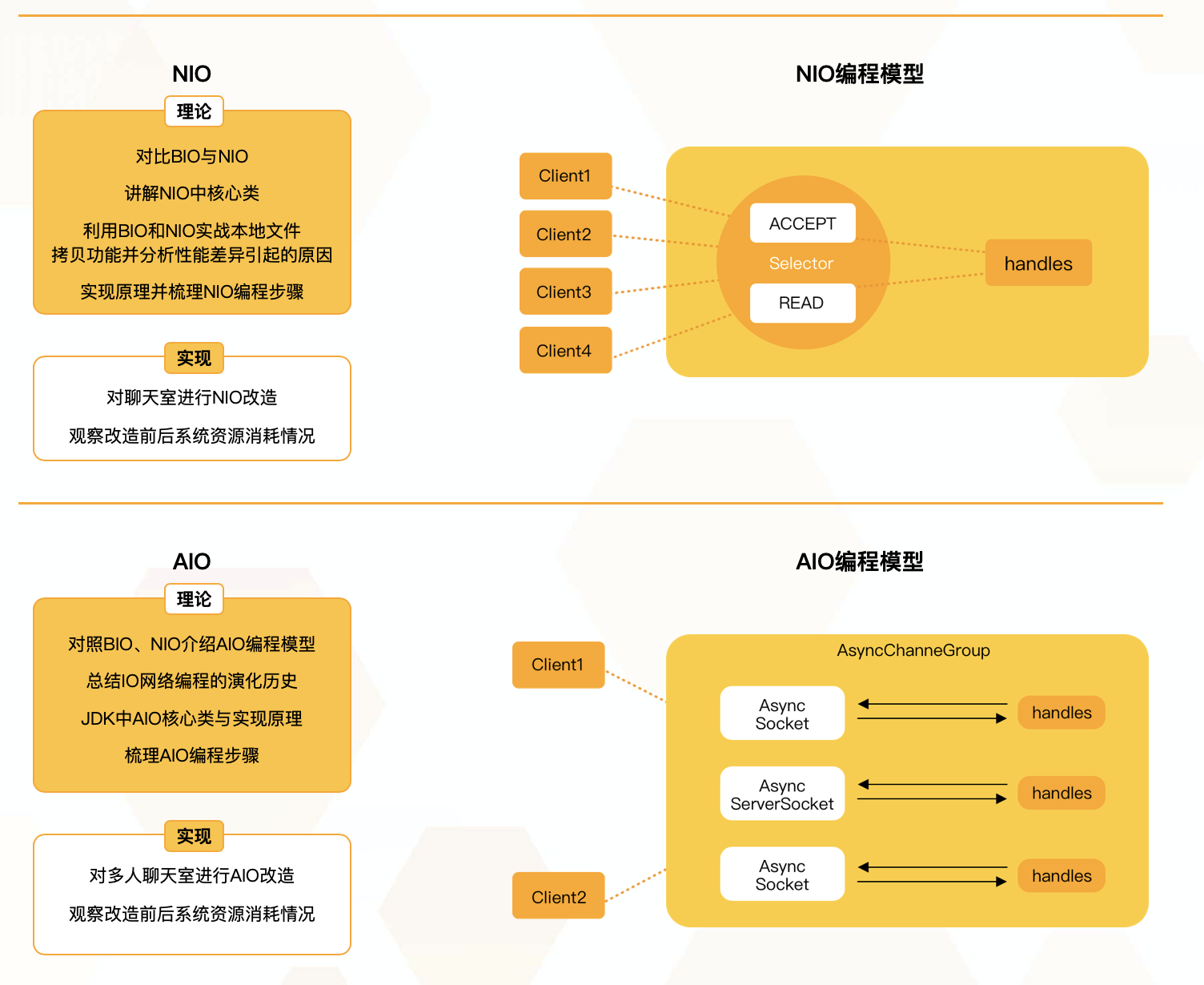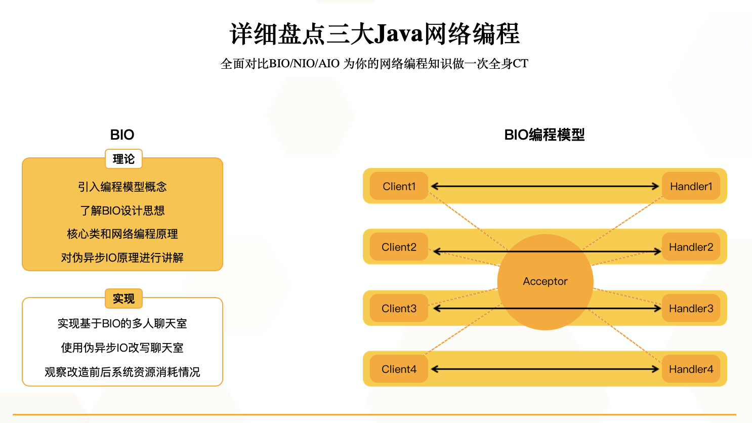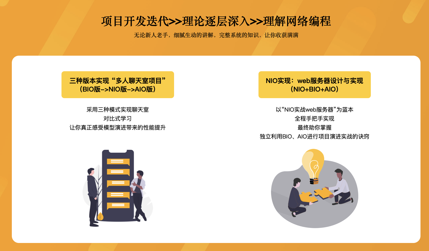以创新性的“对比式学习”搭建网络编程课程,课程主线:网络层基础铺垫–>java网络编程前置技术讲解–>阻塞式编程BIO–>非阻塞式编程NIO–>异步编程AIO–>综合实战)适合每一位需要理解网络编程的同学们学习。