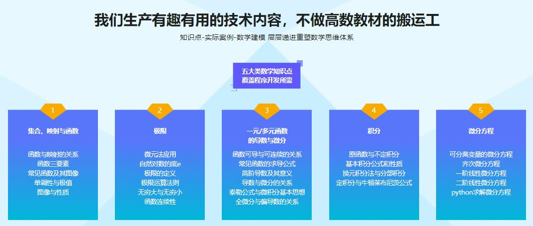 本章主要整体介绍课程,讲解高等数学与其他学科的结合应用,包含新兴理论算法及其前沿应用。另外,课程许多章节都有实战训练,会使用到python、SPSS或MATLAB等程序语言和应用软件。