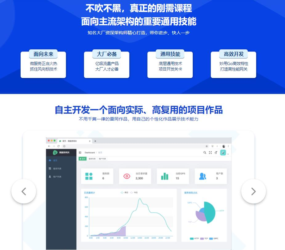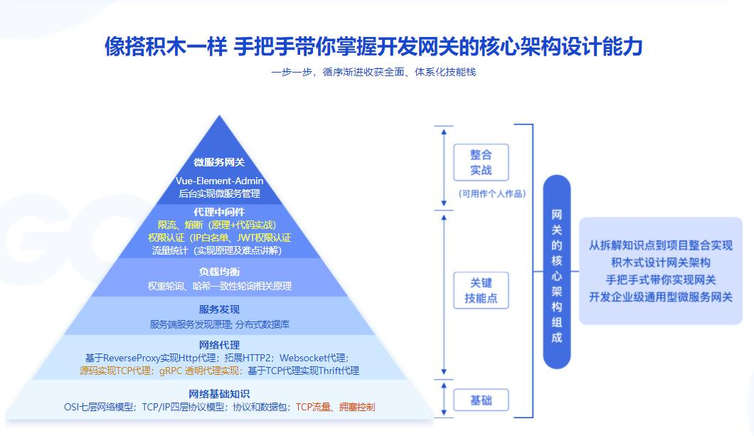 本课程带你手把手设计并实现一个通用型前端+后端一体的微服务网关项目,同时利用Go语言本身的性能优势,打造网关的优越性能,提升自身硬实力,还能收获微服务网关项目作品,丰富个人简历。