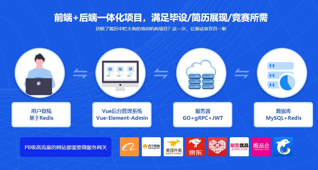你是否遇到这样问题?投递很多简历,总是石沉大海大海,杳无音信?经过分析很多小伙伴的简历,大多采用了培训机构烂大街项目作为项目经验,导致无缘面试邀约。本课程就为你解决这个燃眉之急。同时,Vue很火,Vue+Go的结合早日学成,早日挑大梁!…