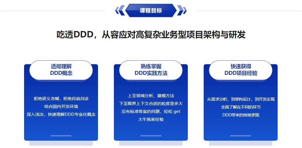 随着全行业互联网化的深入,项目所涉及的业务越来越多样、精细、专业,普通的CRUD、传统架构模式与建模方法已无法满足市场需求。在此背景下,DDD思想再次受到大厂关注与欢迎。但是,市面上很多DDD课程不够落地,大家付出大量时间还是学得云里雾里。本课程就邀请BAT资深架构师,以一个DDD研发实战为主线,带你从概念到代码,真正吃透DDD。