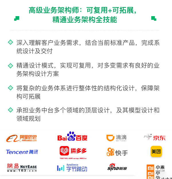 站在更高角度做业务架构,通过讲解电商、金融、直播、传统领域的业务架构等,通过对多个业务场景进行业务架构,让大家看透业务架构的本质。最终梳理出业务架构的方法论和思维模型,最终帮助大家做到举一反三,达以不变应万变!