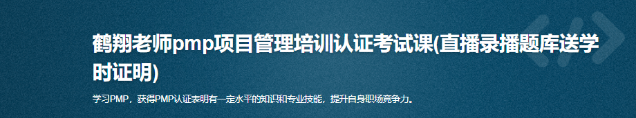 鹤翔老师PMI-PMP认证班课程,干货满满,课程内容包括课程直播,35学时培训证明,提供英文报名服务,仿真题库,VIP班群(志同道合人+教务安排),录播视频,7*12小时名师答疑,模拟考试安排,助力您考取PMP证书,提升您职场竞争力,为您职场加分。