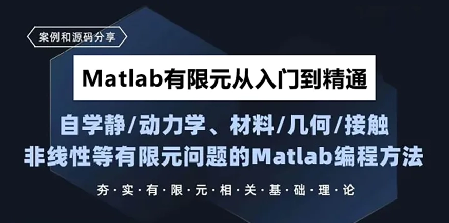 本课程为matlab有限元编程专题课,课程主要以案例的形式进行讲解,中间会穿插案例中所涉及到的有限元基本理论,案例主要围绕固体力学问题的有限元求解进行讲解,包括静力学、动力学的线性和非线性问题,采用的单元类型有杆单元,梁单元,平面三角形/四边形单元,薄板单元,厚板单元,四/六面体实体单元等等。内容丰富,每节课都是一个小时左右,干货满满,欢迎学习!