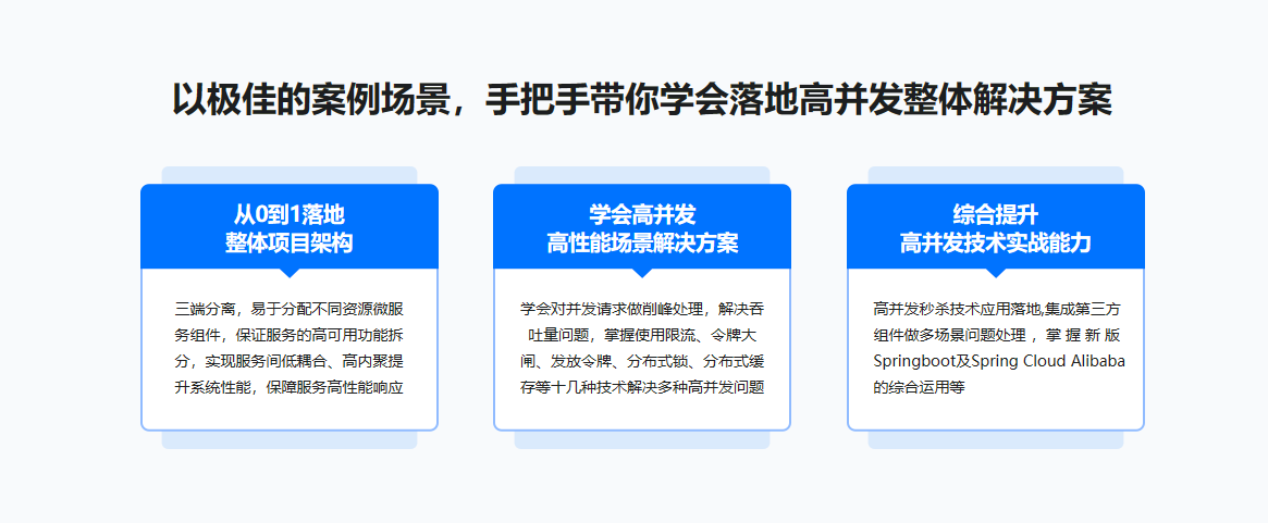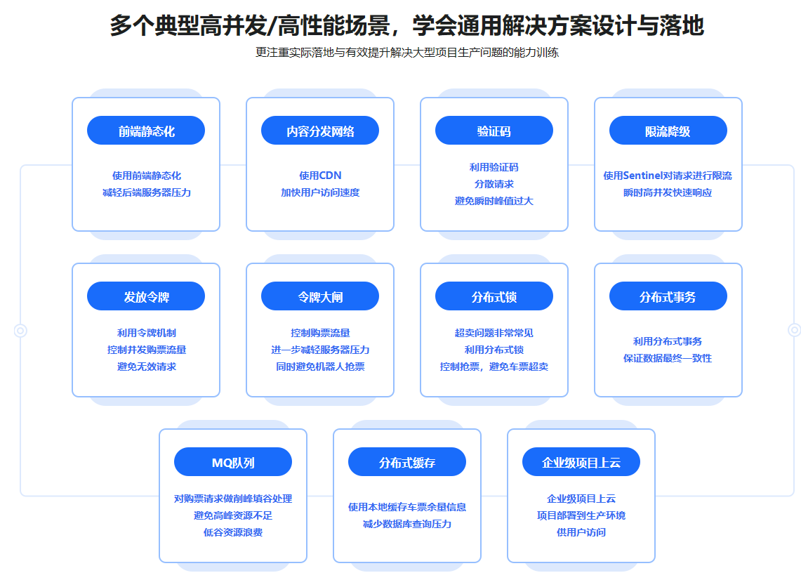 慕课网明星讲师“甲蛙”全新力作:一套市面稀缺的,手把手教你完整落地“高并发,高可用,高性能” 整体解决方案实战课。课程以12306售票系统驱动教学,融合老师多年大厂超大型项目架构设计与实战经验,带你从架构设计到具体场景方案落地,真正驾驭超高并发场景下的各种疑难问题,成为高薪抢手人