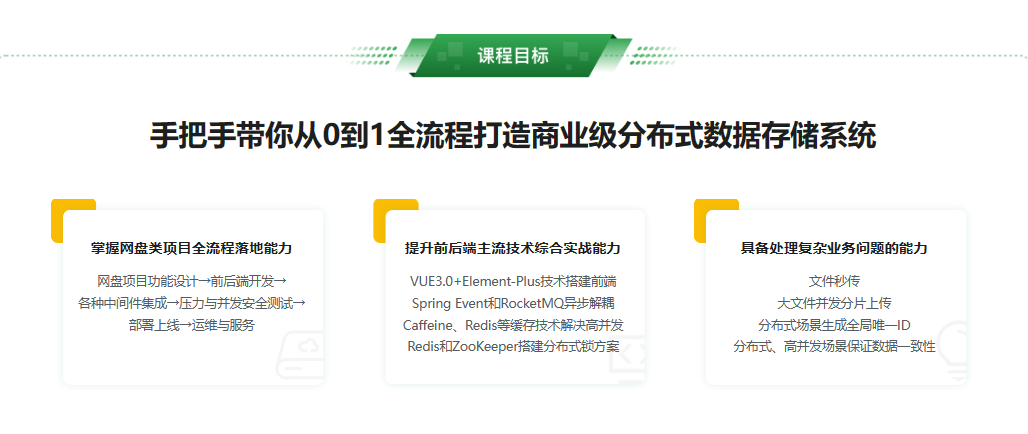 数据存取与安全是数据时代的基石,个人隐私现在愈发重要,拥有属于自己的高安全性存储系统迫在眉睫。本课程将带你从项目设计、实现、优化、压力与并发安全测试、部署上线全流程打造业务俱全的网盘系统,并解决数据存储安全问题。助力你实现复杂业务与全栈技术双重提升,大大提升毕设通过率,求职面试通过率,升职加薪成功率。