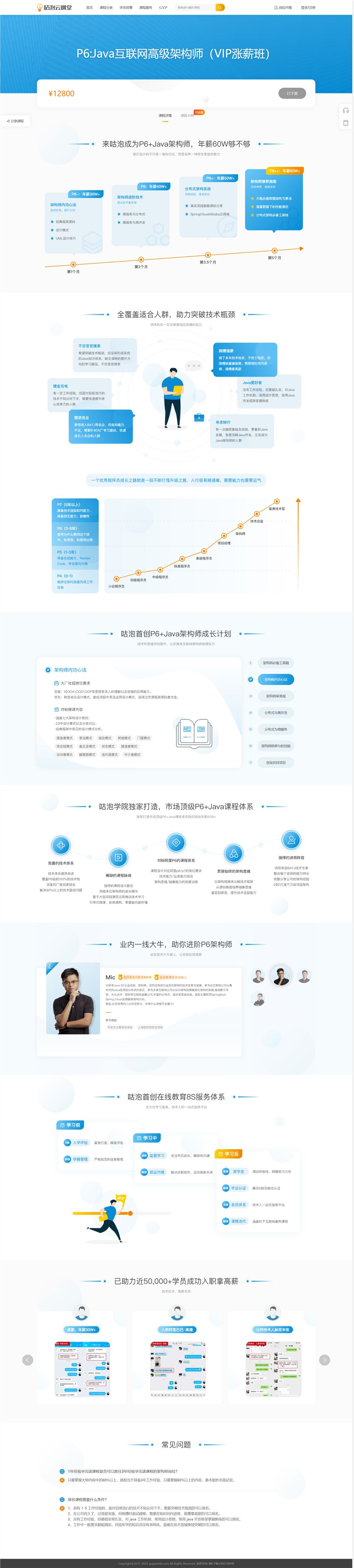 课纲对标阿里P6+、名企电商项目实战、职业生涯规划、BATJ面试辅导。