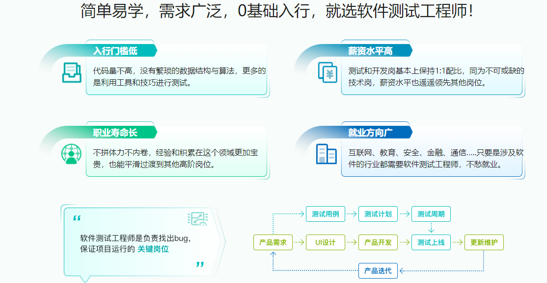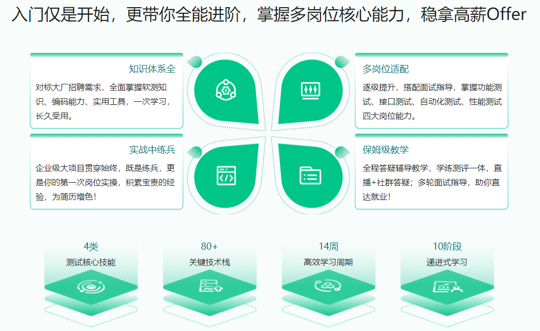 遵循大厂用人标准,全面覆盖主流测试技术,三个半月直达就业