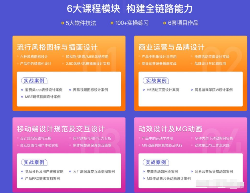 UI设计师视频课程出自于网易云课堂微专业板块,课程从招聘需求出发、着力于培养全链路设计能力,是一门实战型课程。本课程内容大致分为6大板块,逐一讲解UI设计核心模块知识,包括流行风格图标与插画设计、商业运营与品牌设计、移动端设计规范及交互设计等等。