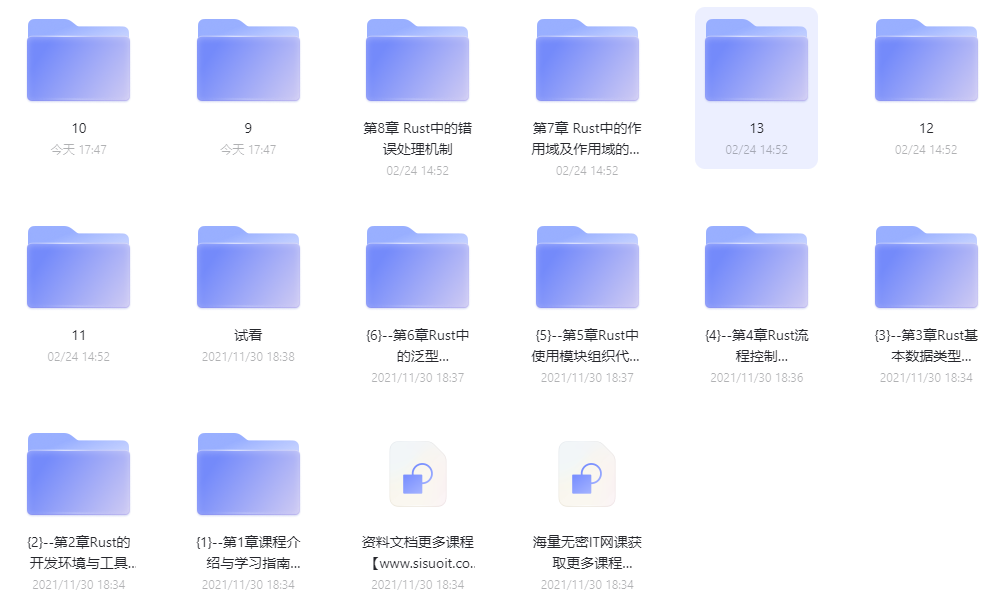 - 视频:9-7 Rust中的系统时间SystemTime (13:57)