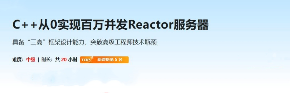 是否具备高并发、高性能、分布式、事件驱动框架设计能力,是优秀C++中高级工程师的分水岭。本课程通过带大家纯手写一个Reactor服务器( Reactor是大名鼎鼎的redis、nginx、rpc等框架核心模型),让你高效掌握三高框架设计思维,同时让你对C++网络编程、线程、智能指针、C++11标准高阶技术等运用自如,最终倍增编程内功,突破进阶高级工程师技术瓶颈,提升职业核心竞争力。