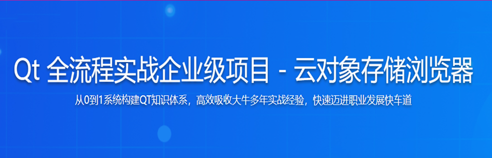 会Qt薪资更高,学Qt找对课程,跟对老师也不难。慕课网首门Qt系统精讲与企业级项目实战课,将从0到1为你系统构建Qt知识体系,全流程实战企业级项目“云对象存储浏览器”,让你高效吸收大牛多年实战经验,少走弯路,快速迈进职业发展快车道,拓宽职业宽度,提升职业高度。
