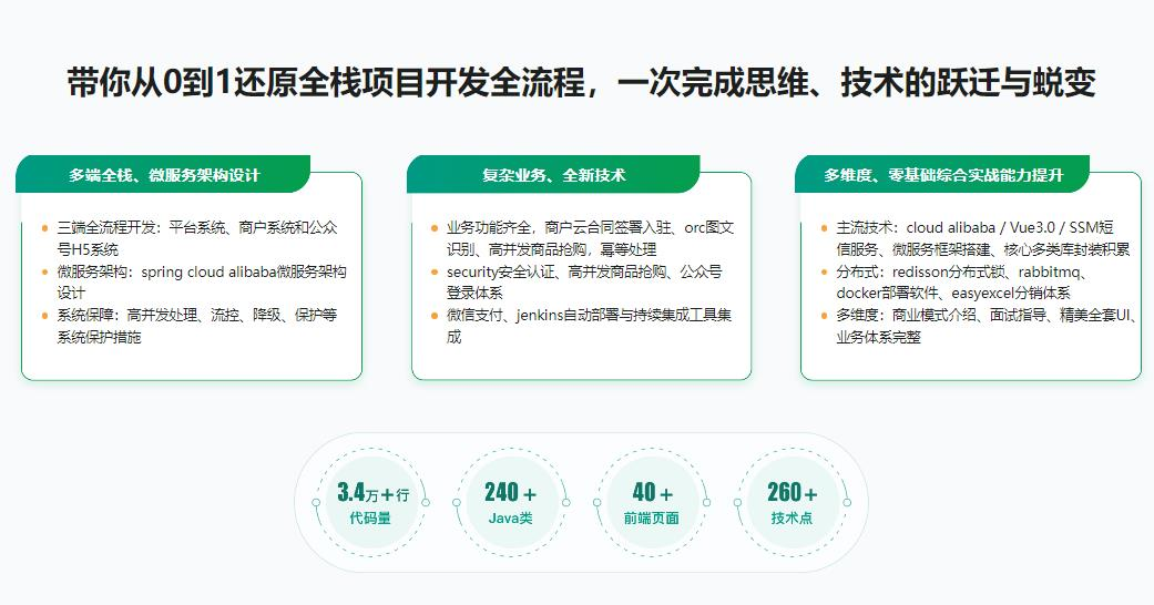 开发新手实力暴涨实战课,热门业务+主流技术+全栈多端+微服务架构