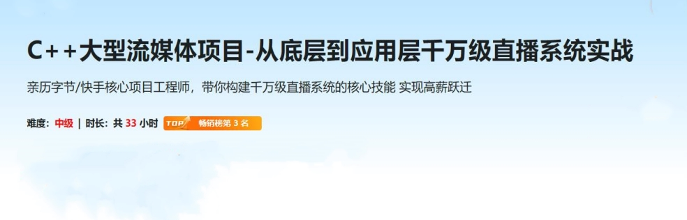 C++大型流媒体项目-从底层到应用层千万级直播系统实战