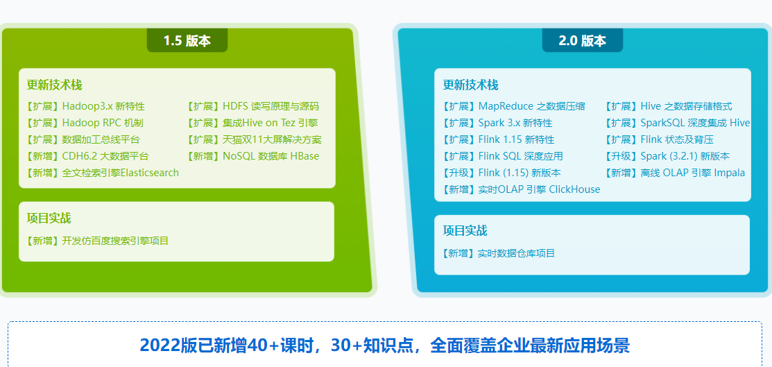 企业级案例驱动学习,还原真实业务场景2022版已新增40+课时,30+知识点,全面覆盖企业最新应用场景
