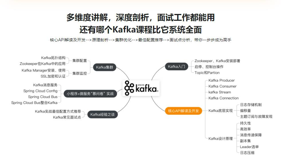 本课从搭建开始,全面剖析Kafka,解读和使用核心API,将底层实现和设计原理融合贯穿,同时结合案例,把原理落地。更有凝结老师心血的Kafka最佳配置方式推荐,以及面试常问知识点梳理。